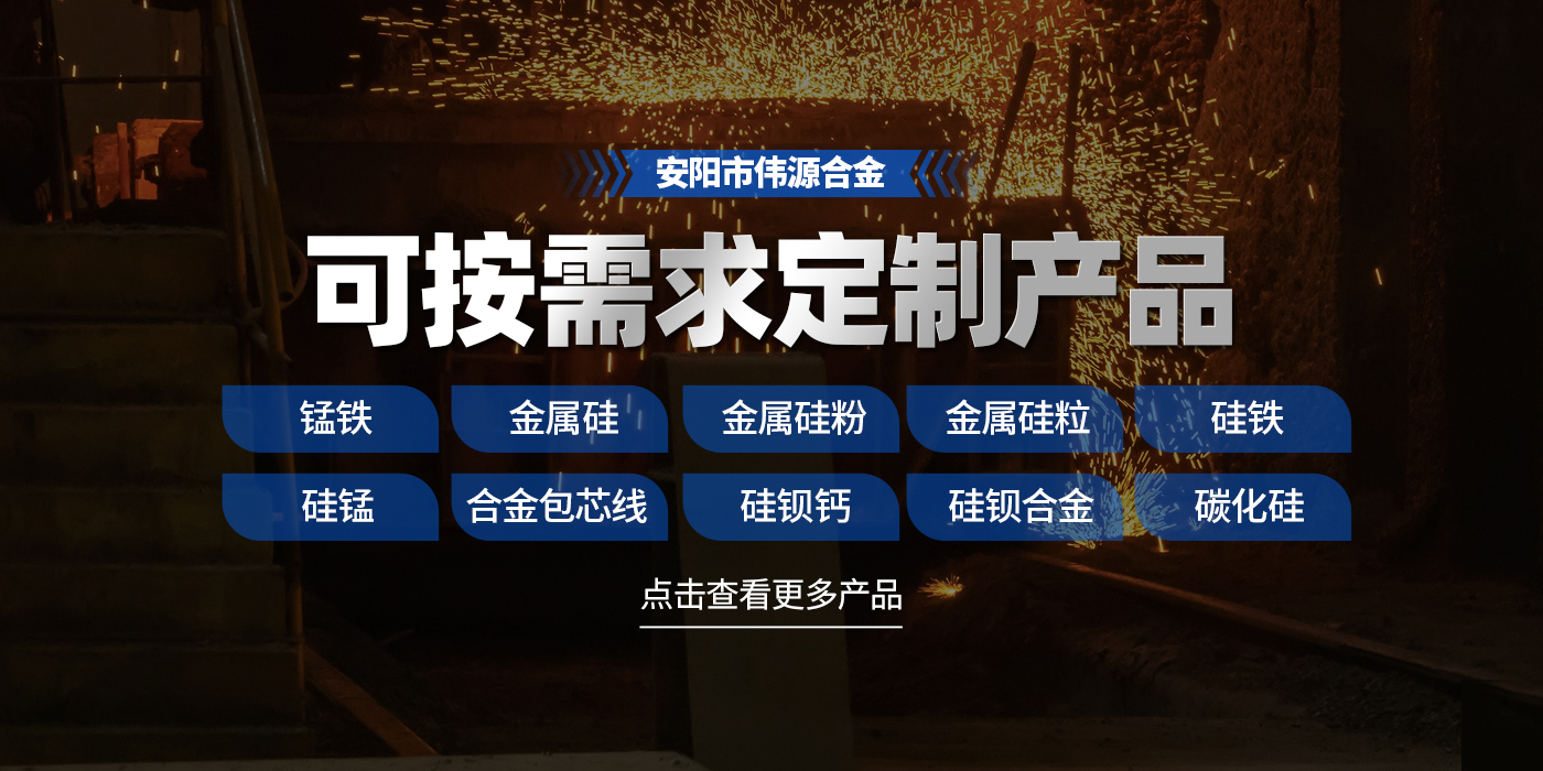 安陽市偉源合金有限公司是從事鐵合金、耐火材料、硅制品加工銷售的廠家。主要產(chǎn)品有:錳鐵、 金屬硅 、 金屬硅粉、 金屬硅粒、 硅鐵、 硅錳、 合金包芯線、 硅鋇鈣、 硅鋇合金、 碳化硅、 硅碳合金球、 化鋁硅、 硅微粉、 硅鐵粉、 鋁鎂鈣等,我公司產(chǎn)品質(zhì)量穩(wěn)定可靠,均可按用戶要求進(jìn)行品質(zhì)保證,現(xiàn)貨供應(yīng)!我們成立以來,堅持“以質(zhì)量求生存,以誠信求發(fā)展,以科技求效益”的經(jīng)營理念。隨著公司的快速發(fā)展,我們